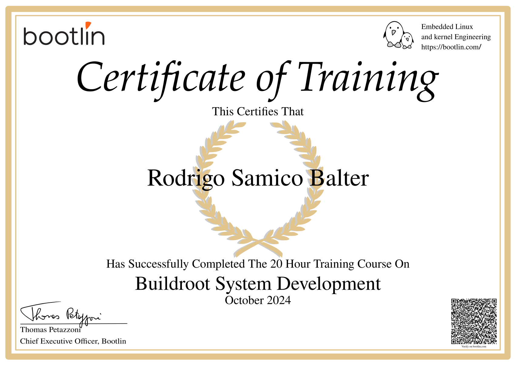has successfully completed Bootlin's